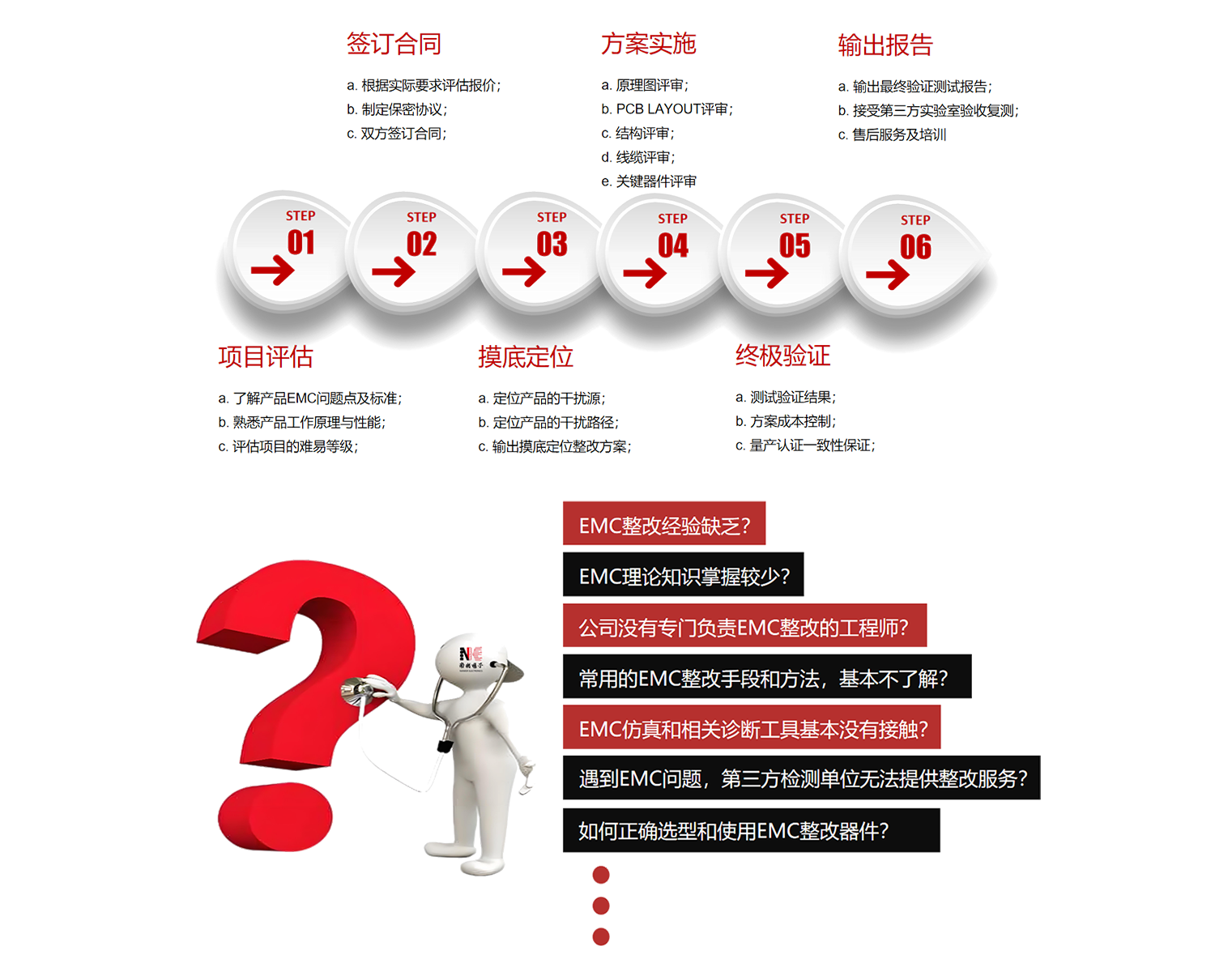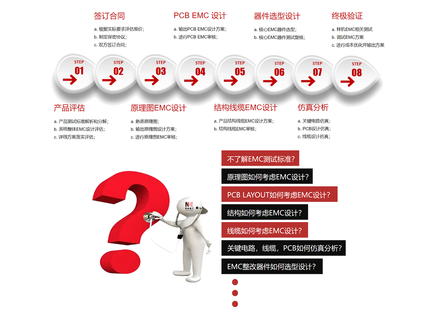如果您在產品設計初期,需要提供EMC設計服務,請聯系我們,南柯電子擁有專業的EMC整改設計專家團隊,近千例成功EMC整改設計案例,自建標準大功率EMC暗室,種類齊全的EMC整改器件(支持現場定制),可以提供快速,高效,低成本,可量產化的全方位EMC解決方案服務。企業通過和南柯電子進行合作開發出來的產品,85%的新品能夠一次性通過EMC測試,同時企業的研發人員能夠在合作開發設計過程中大大提高自身的EMC設計水平和應用水平,提升企業整體研發團隊的競爭力。
