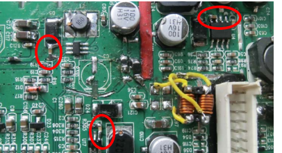 (9)12V 轉 5V 電路輸入地線(電容 C100 附近,具體位置見樣機)增加磁珠(大電流, 阻抗 120Ω, 同 L72);