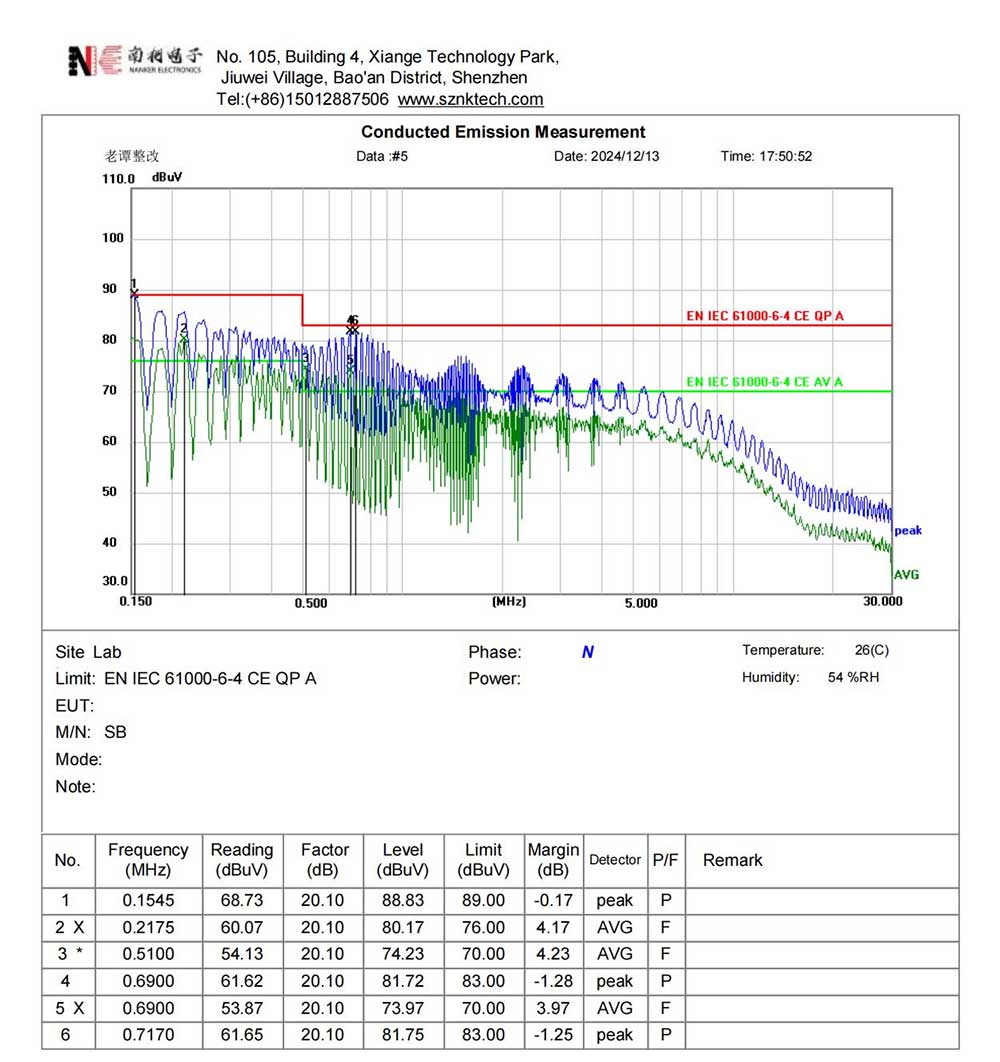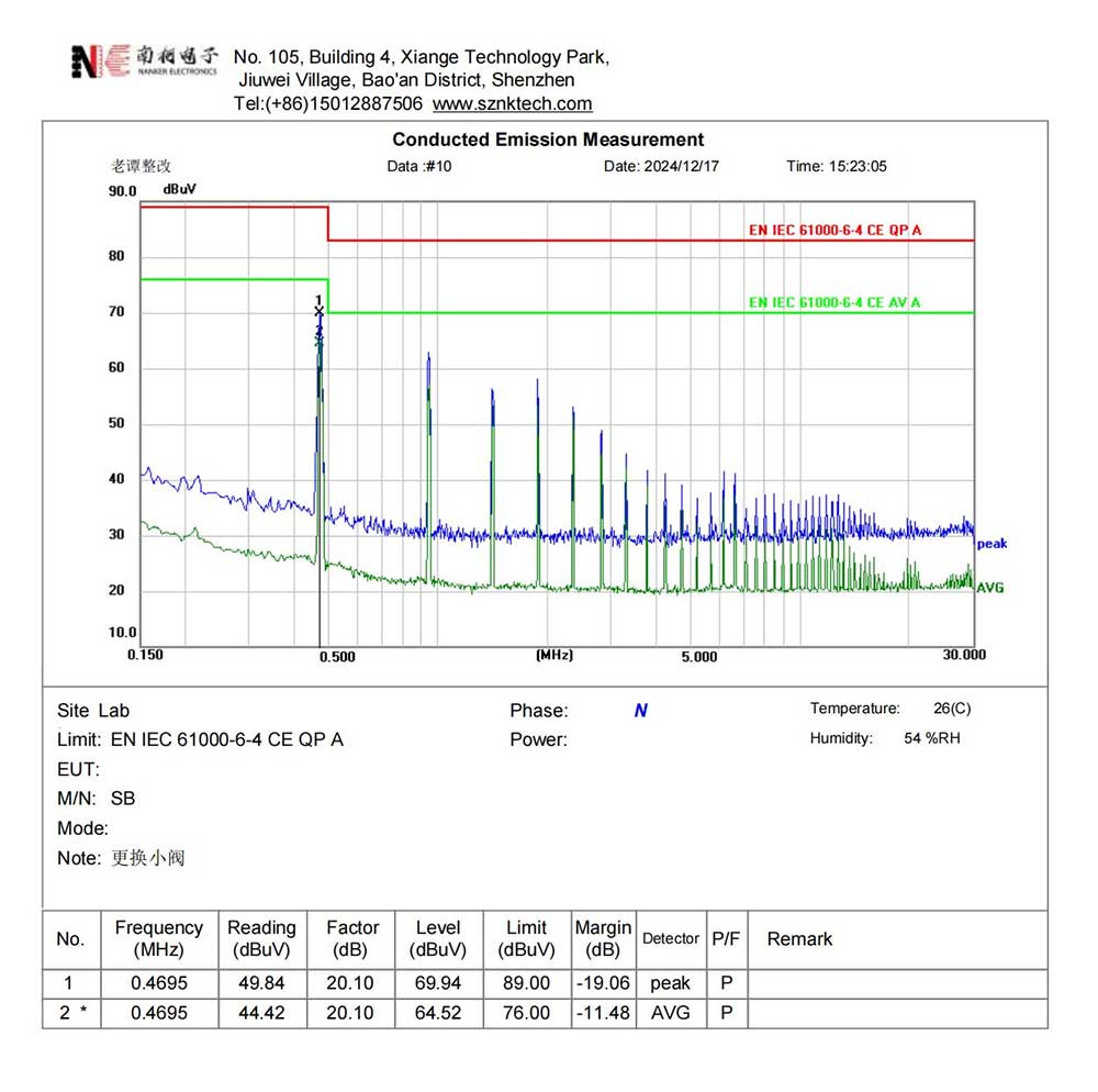 三頻點傳導發射可同步達標,且全頻段(0.15~30MHz)余量提升>6dB,最后整改通過。