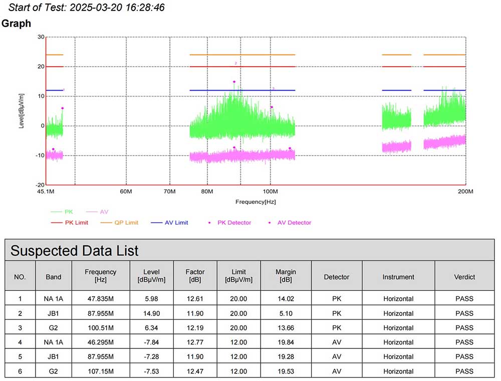 · 整改完成后,再次在 3 米法電波暗室按照相同標準進行測試,834MHz 頻點垂直極化方向的峰值明顯改善,比整改前降低了 20+dB,滿足標準限值要求。連續測試 5 次,該頻點的輻射值均穩定在 6-8dBμV/m 之間,整改效果顯著。