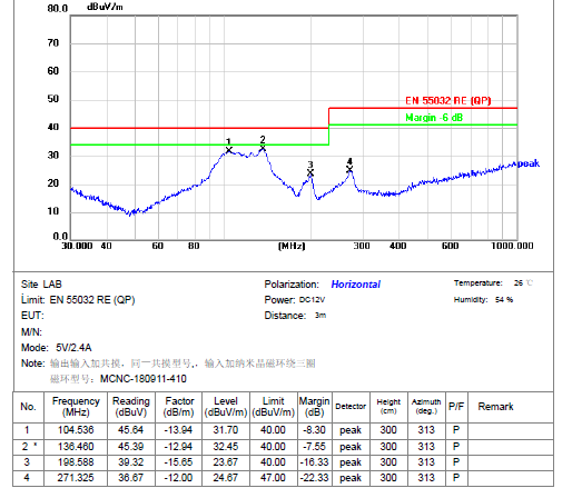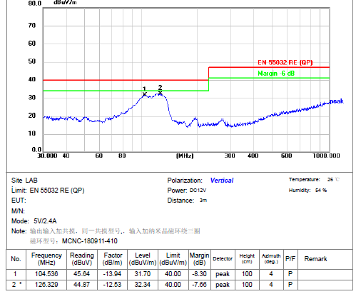 四、整改后效果:67MHz 和118MHz頻段輻射值余量大于7dB,完全滿足標(biāo)準(zhǔn)要求;