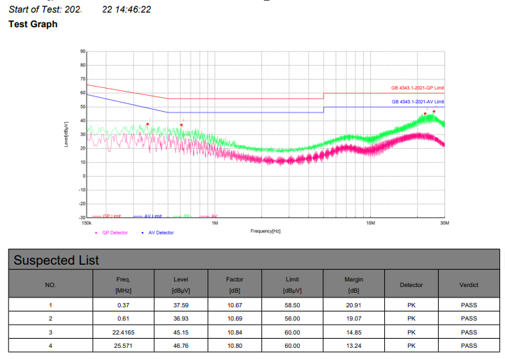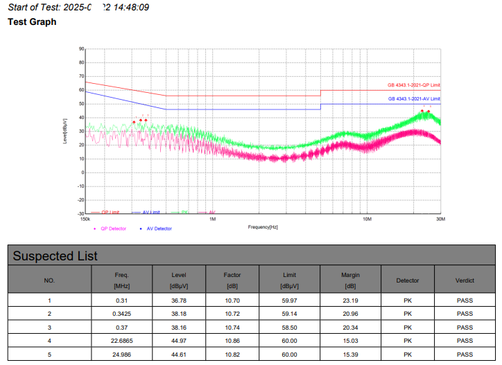 某型號廚余垃圾處理器在第三方檢測中暴露出150kHz-30MHz 傳導發射超標(最高超差 22dBμV),涉屬典型共模干擾,不符合新國標電磁兼容要求。
